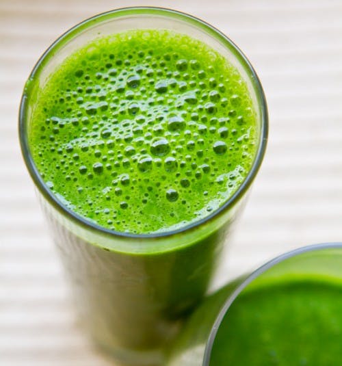 Juice everything together in your juicer in this order and then pour and enjoy. It's important to use 'wet' cucumbers or apples at the end of the juicing order to 'flush the previous leafy and more dry ingredients from your juicer to get every bit of flavour and 'greenness' from it.
