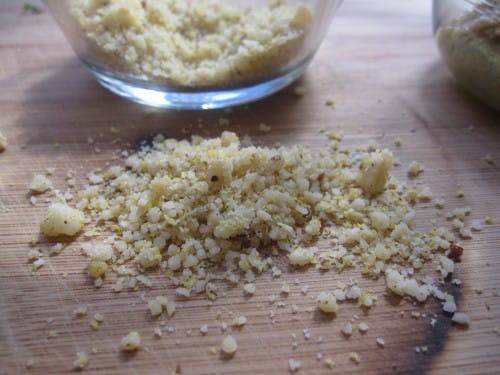 Add brazil nuts to the food processor and Pulse on and off 10 or more times until coarsely pulsed. Then add the garlic and nutritional yeast and sea salt and pulse 4-5 times (you can see the finished product in the photo). Sprinkle on finished salad!! This is simply delicious. Can be used on pasta too.
