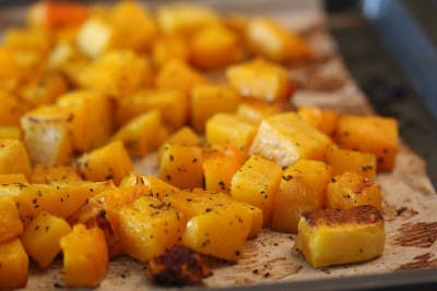 1 small butternut squash, peeled, remove seeds and cut into 1″ chunks (about 6 cups of cubed uncooked squash)